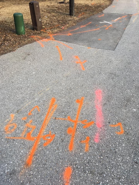 Today I walked to and from work with a detour to the dollar stores to see what St Pat’s day stuff I could find. On my way home things got interesting. There was a big, loud helicopter hovering and then moving to a new location to hover some more. It flew right over my head. At the same time a train passed over the road and the tangle of lines on the road is now a HUGE hole in the ground. This all happened in the same little area. It made the walk home a little less ordinary.